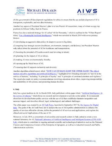 (4) the government will development regulations for ethics to ensure that the use and development of AI is